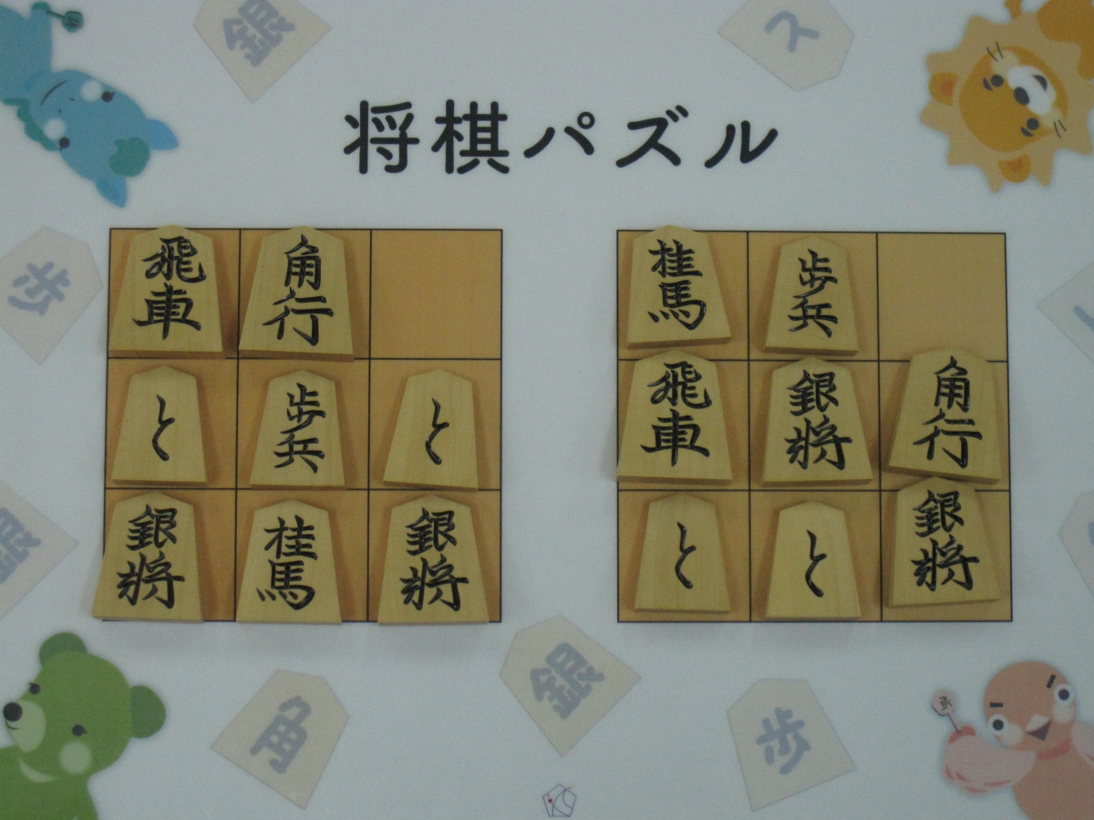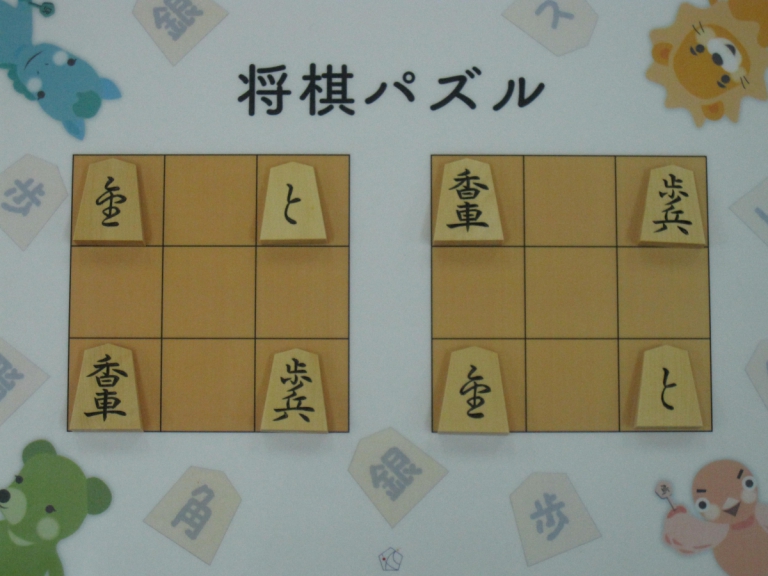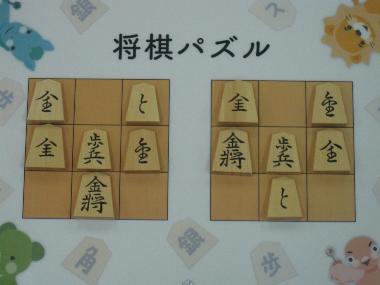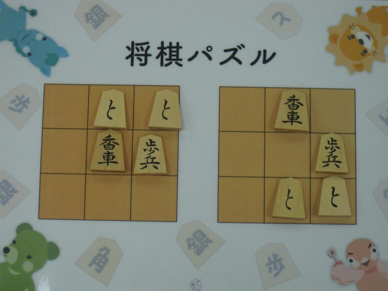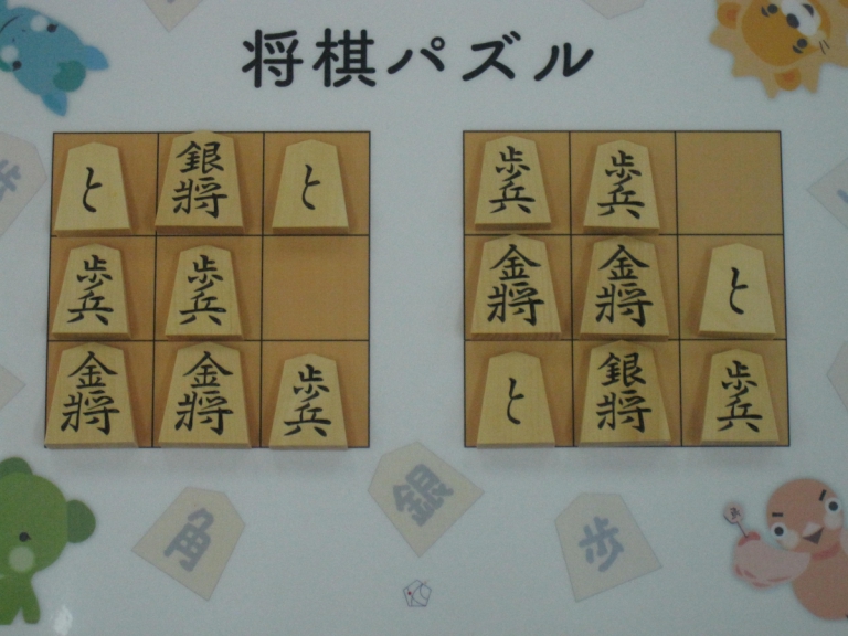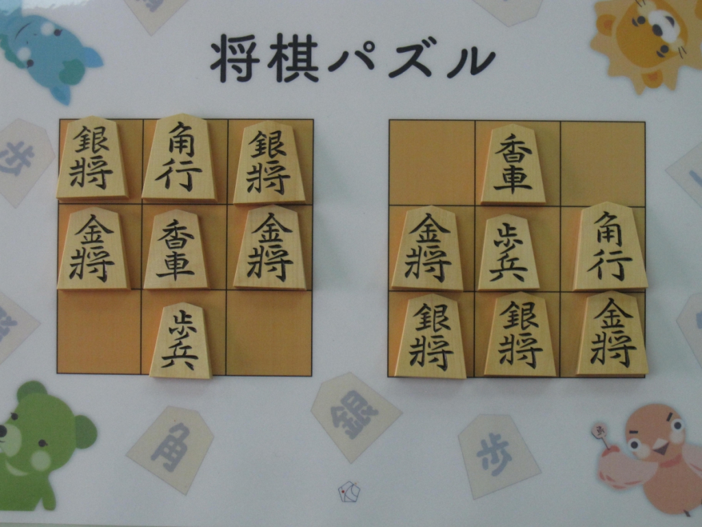 Let’s move the pieces in the left figure to be the positions in the right figure, following the piece movement rules. The pieces cannot move out the board of 3x3 squares. Shogi puzzle is an easy game with Shogi pieces and a board of 3x3 squares. Even young children without full knowledge of Shogi piece movements can enjoy Shogi puzzles.