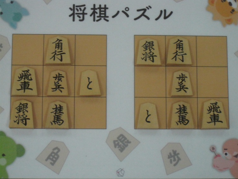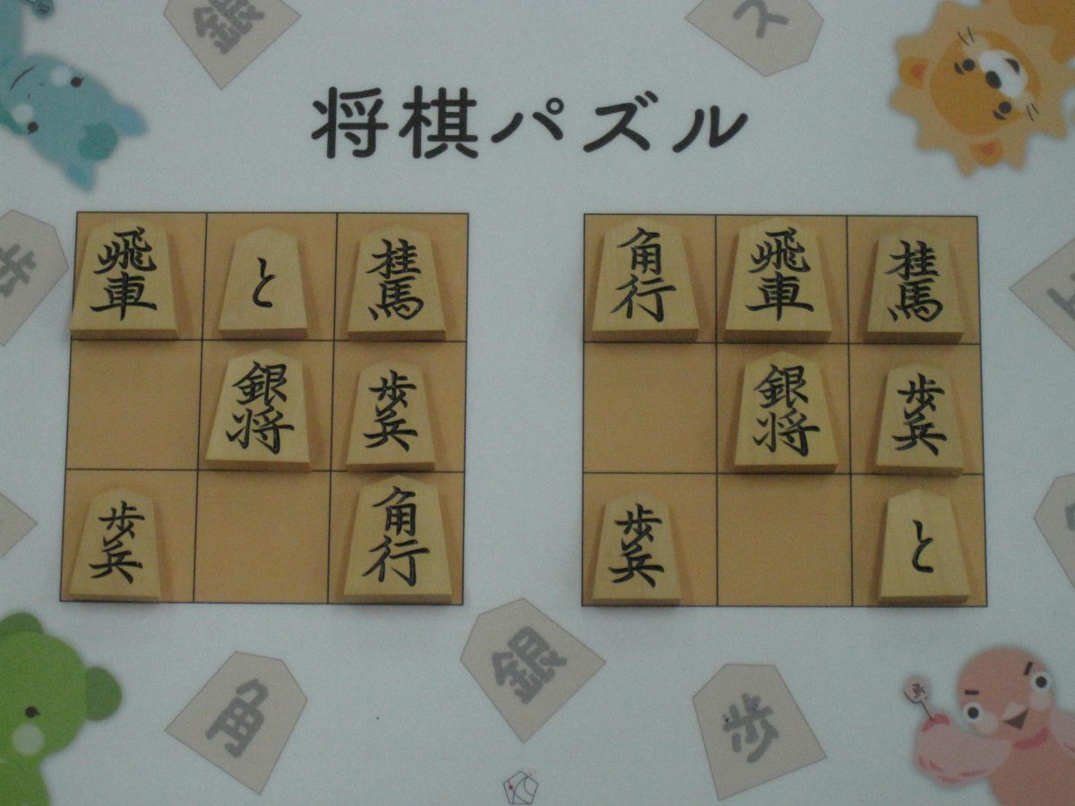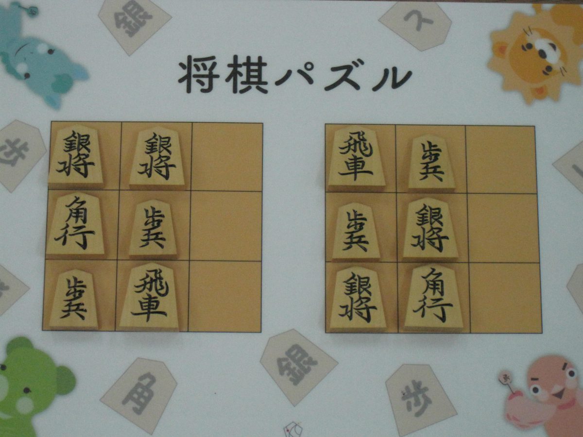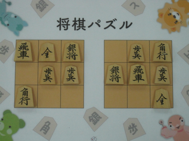 Let’s move the pieces in the left figure to be the positions in the right figure, following the piece movement rules. The pieces cannot move out the board of 3x3 squares. Shogi puzzle is an easy game with Shogi pieces and a board of 3x3 squares. Even young children without full knowledge of Shogi piece movements can enjoy Shogi puzzles.