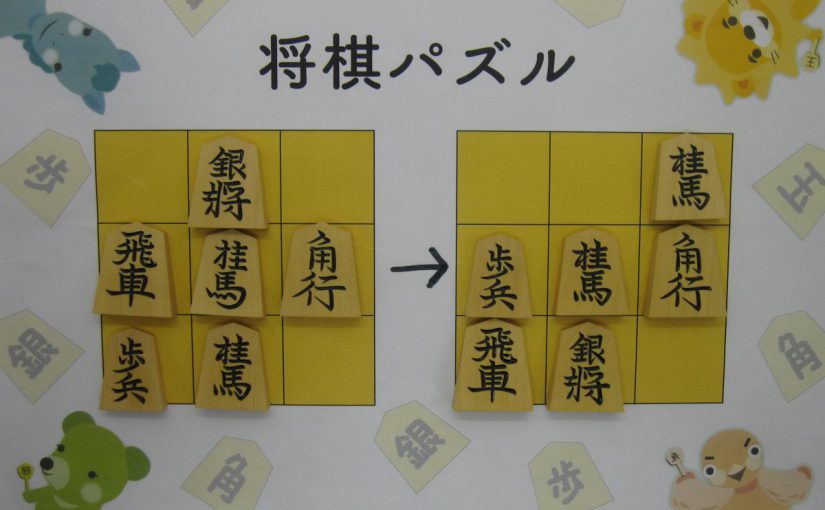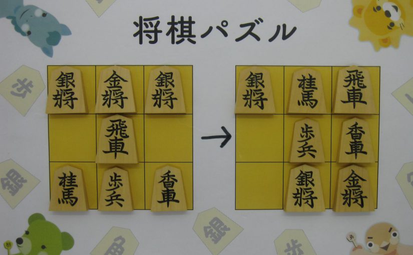 Let’s move the pieces in the left figure to be the positions in the right figure, following the piece movement rules. The pieces cannot move out the board of 3x3 squares. Shogi puzzle is an easy game with Shogi pieces and a board of 3x3 squares. Even young children without full knowledge of Shogi piece movements can enjoy Shogi puzzles.