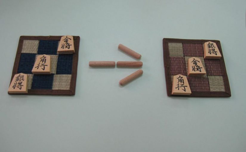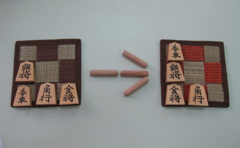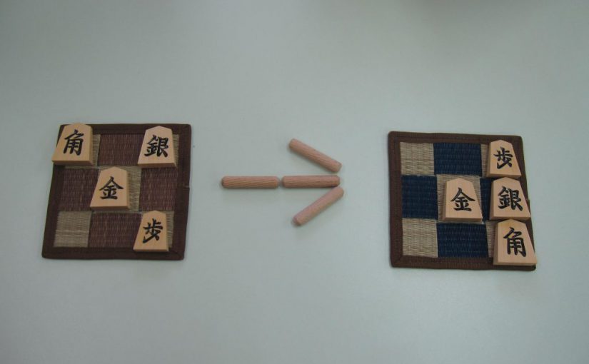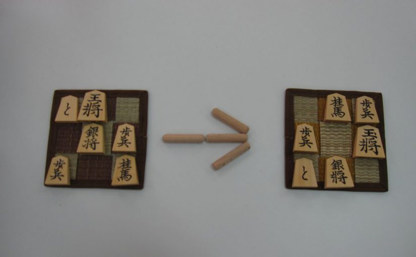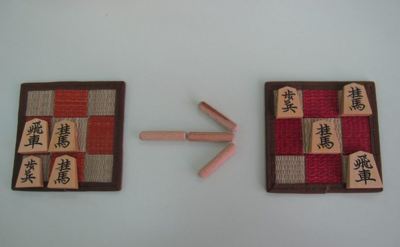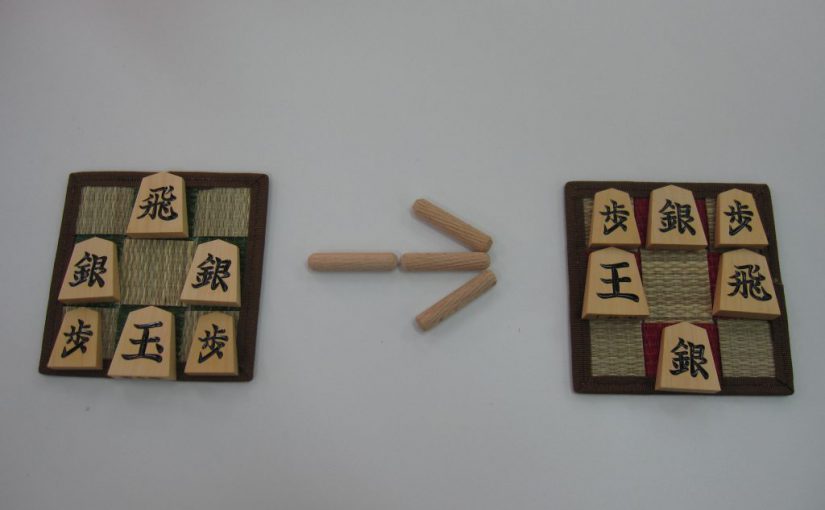 Let’s move the pieces in the left figure to be the positions in the right figure, following the piece movement rules. The pieces cannot move out the board of 3x3 squares. Shogi puzzle is an easy game with Shogi pieces and a board of 3x3 squares. Even young children without full knowledge of Shogi piece movements can enjoy Shogi puzzles.