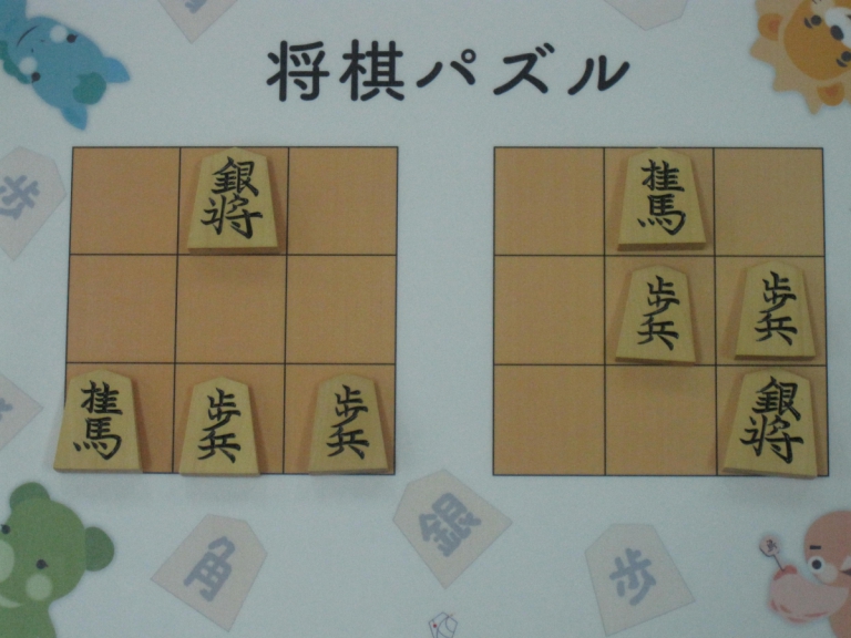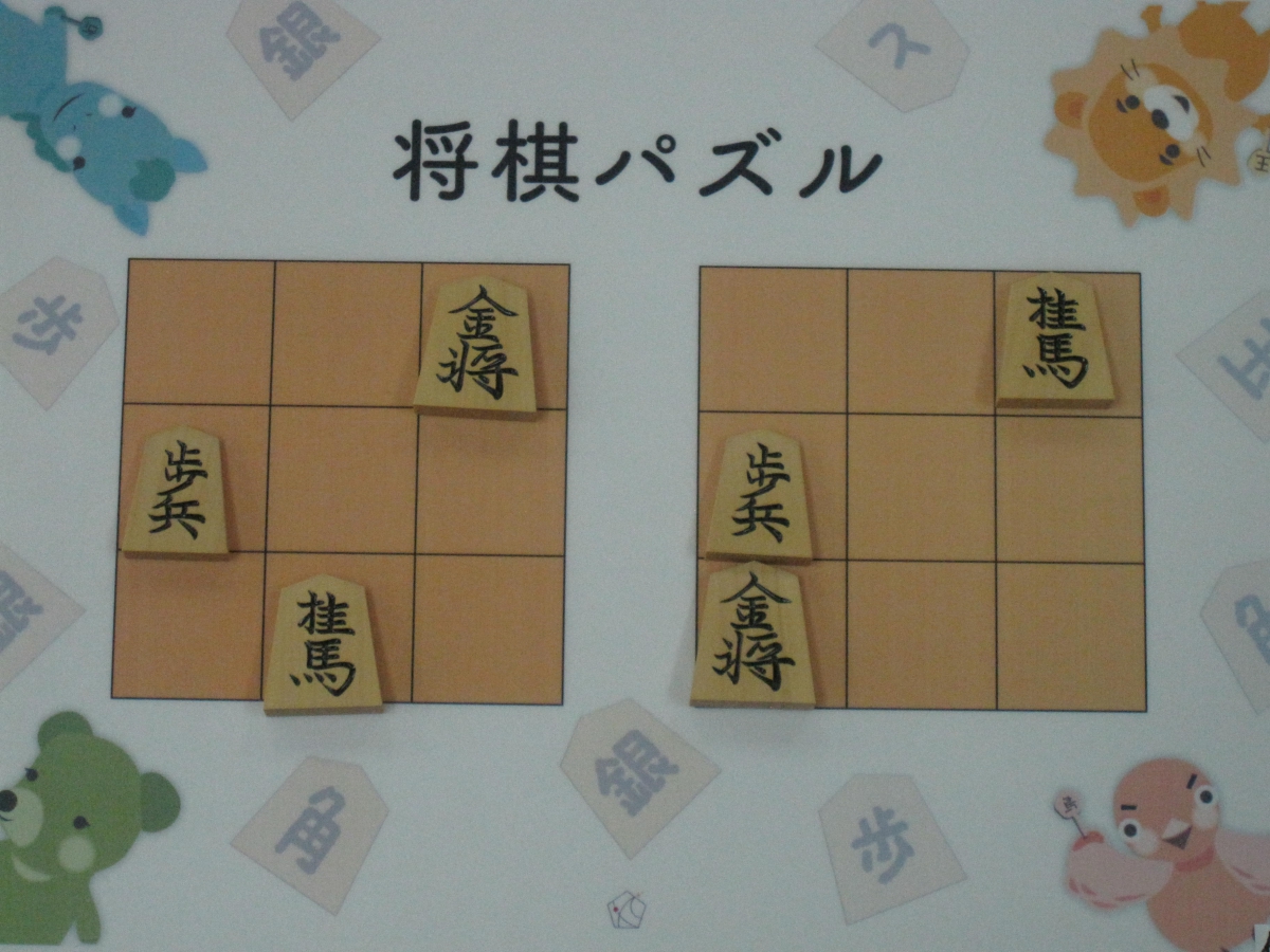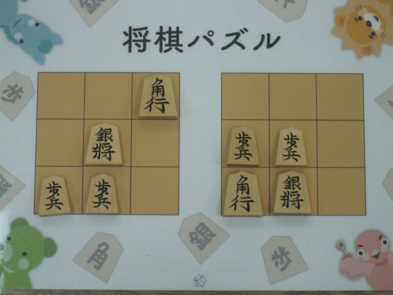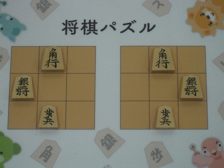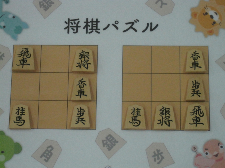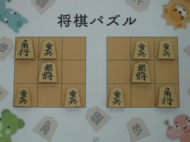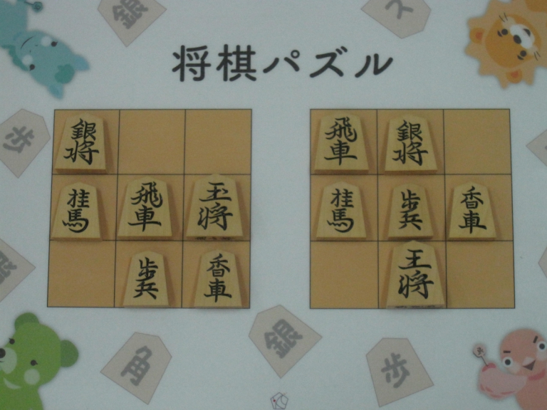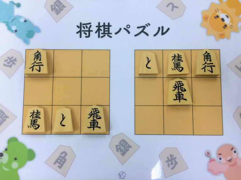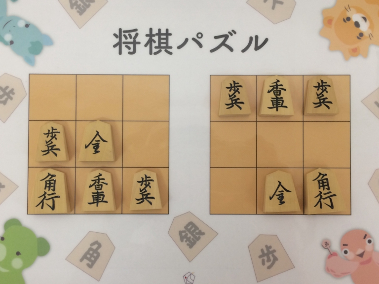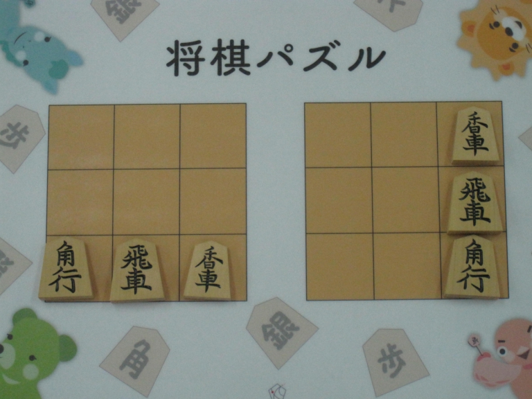 Let’s move the pieces in the left figure to be the positions in the right figure, following the piece movement rules. The pieces cannot move out the board of 3x3 squares. Shogi puzzle is an easy game with Shogi pieces and a board of 3x3 squares. Even young children without full knowledge of Shogi piece movements can enjoy Shogi puzzles.