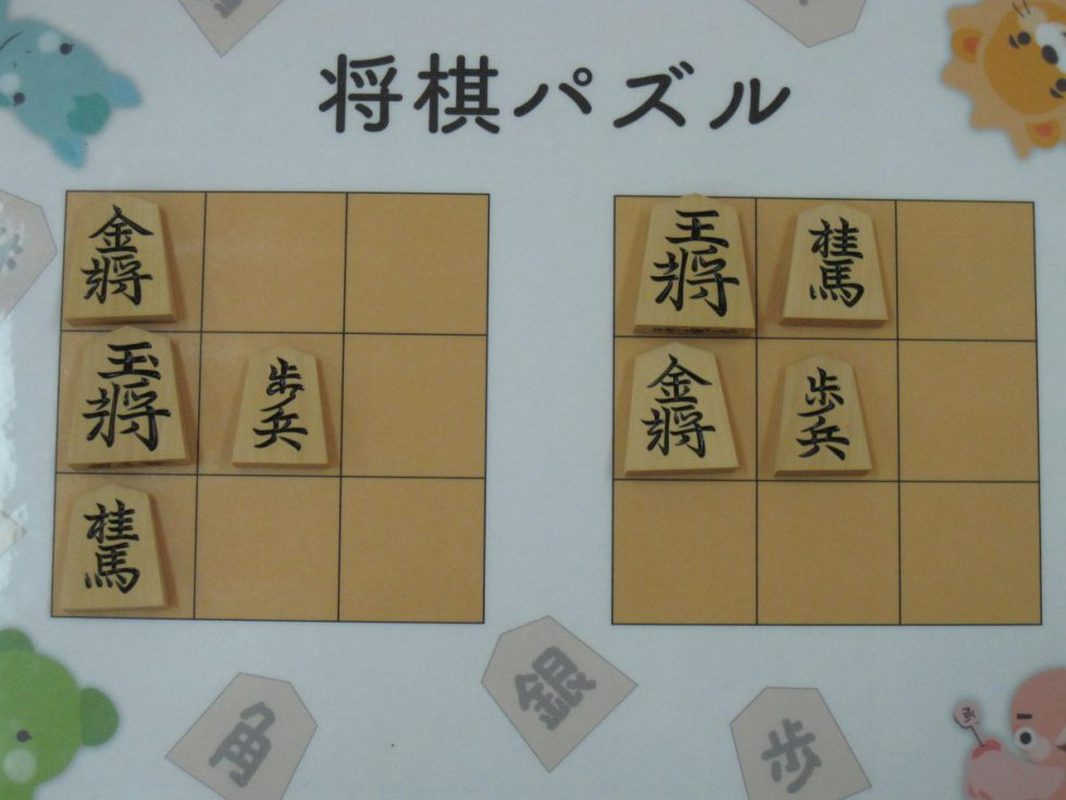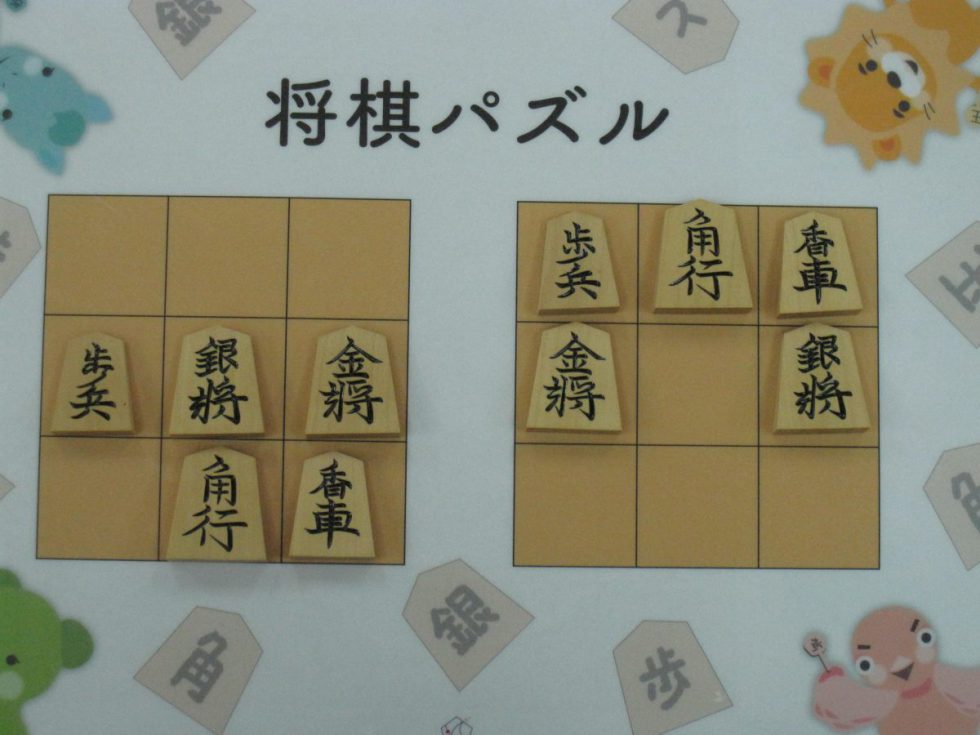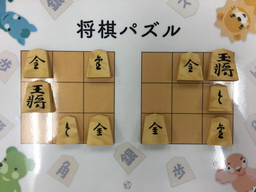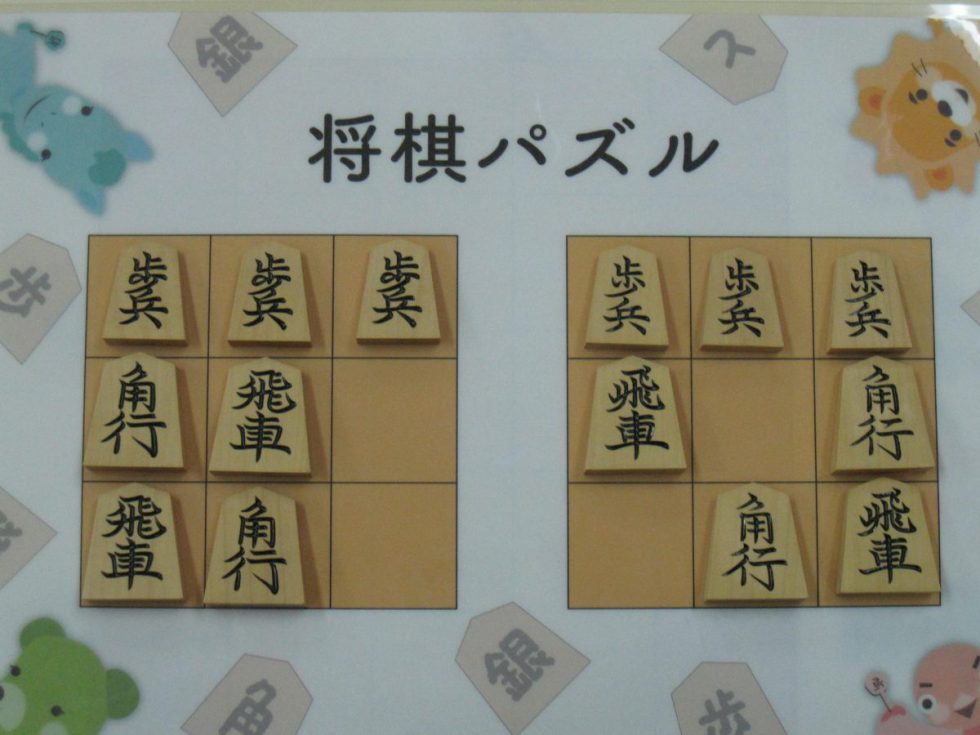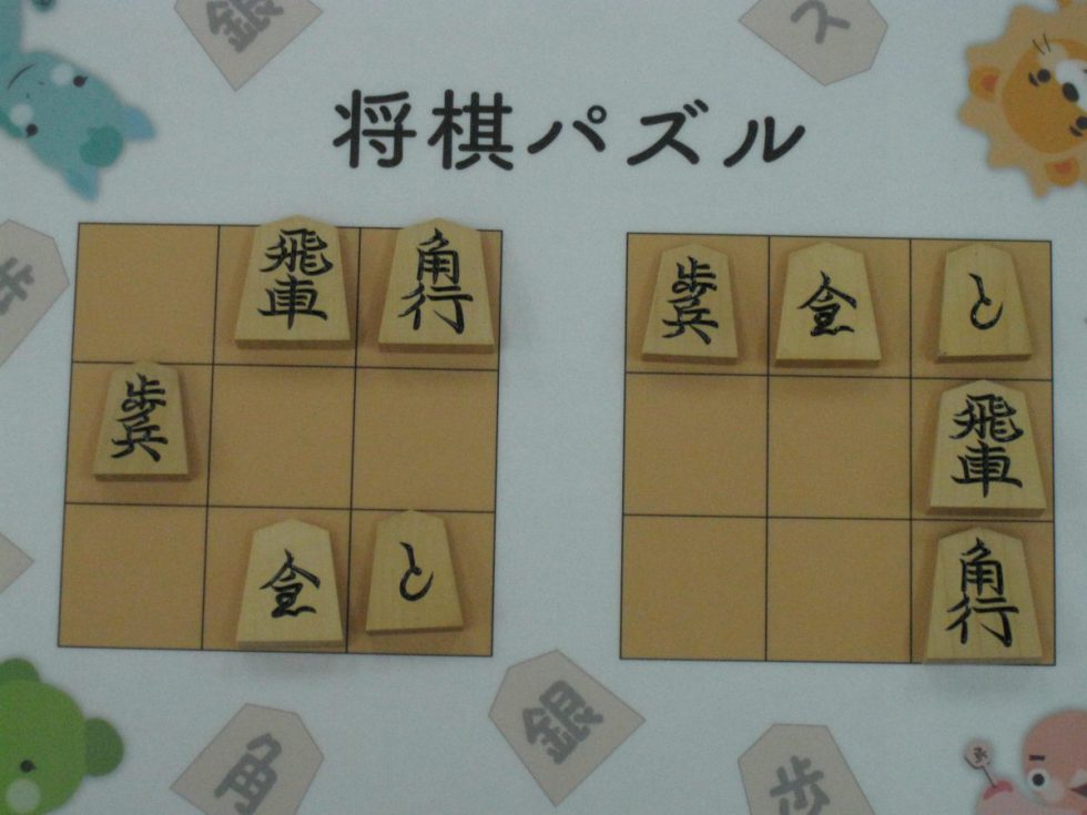 Let’s move the pieces in the left figure to be the positions in the right figure, following the piece movement rules. The pieces cannot move out the board of 3x3 squares. Shogi puzzle is an easy game with Shogi pieces and a board of 3x3 squares. Even young children without full knowledge of Shogi piece movements can enjoy Shogi puzzles.