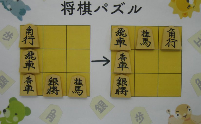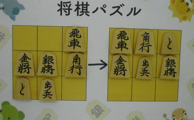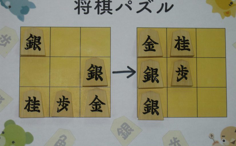 Let’s move the pieces in the left figure to be the positions in the right figure, following the piece movement rules. The pieces cannot move out the board of 3x3 squares. Shogi puzzle is an easy game with Shogi pieces and a board of 3x3 squares. Even young children without full knowledge of Shogi piece movements can enjoy Shogi puzzles.