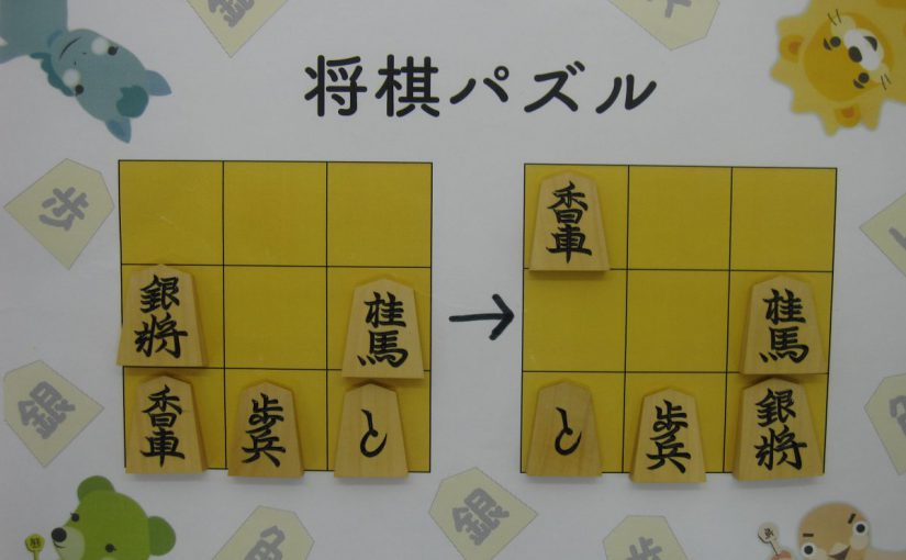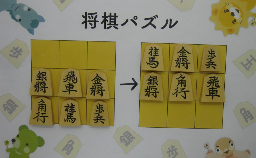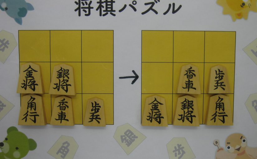 Let’s move the pieces in the left figure to be the positions in the right figure, following the piece movement rules. The pieces cannot move out the board of 3x3 squares. Shogi puzzle is an easy game with Shogi pieces and a board of 3x3 squares. Even young children without full knowledge of Shogi piece movements can enjoy Shogi puzzles.