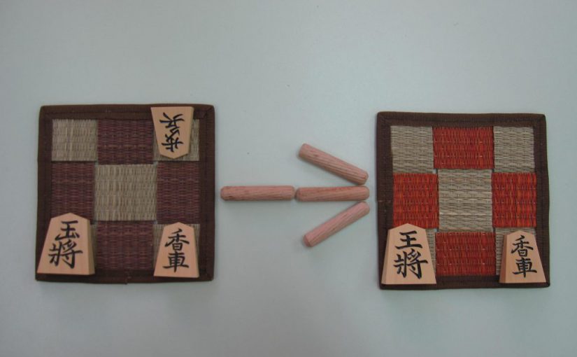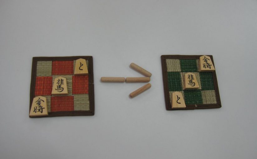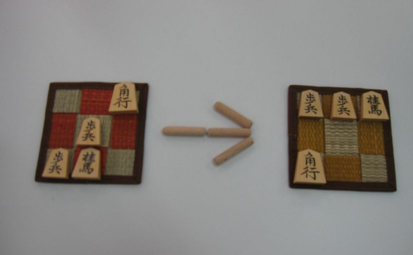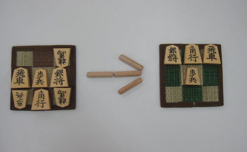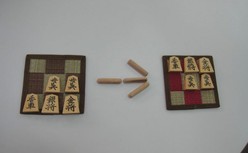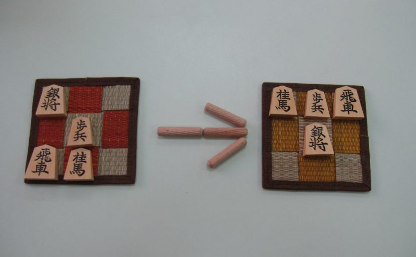 Let’s move the pieces in the left figure to be the positions in the right figure, following the piece movement rules. The pieces cannot move out the board of 3x3 squares. Shogi puzzle is an easy game with Shogi pieces and a board of 3x3 squares. Even young children without full knowledge of Shogi piece movements can enjoy Shogi puzzles.
